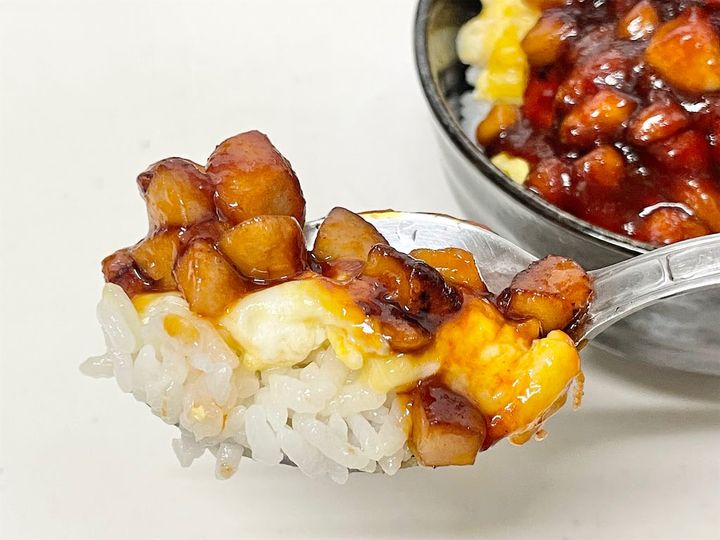3. 【板前歴20年の朝ごはん】見るからに罪深い…こってり味の「禁断のギルティ丼」に挑戦♪ウインナー!卵!チーズ!