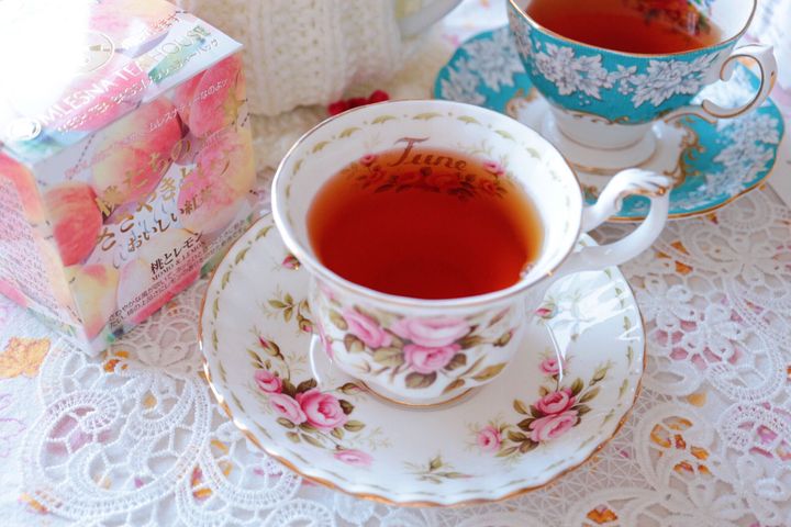 ■6月のティーカップ 紅茶も桃をチョイス