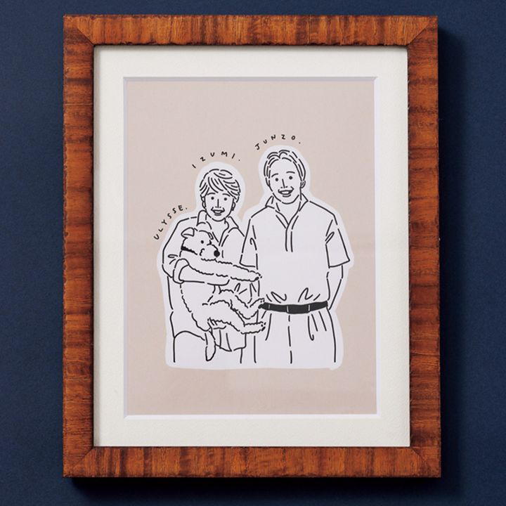 父の日に、義両親とその前年に亡くなった愛犬との旅先で撮った3ショットをイラストにしてもらいました。“あのときの!”と覚えのある写真が可愛いイラストになり義両親とも感激。(小室直子さん)イラストはデータ納品されるので、迷子になりがちなSNSアイコンに設定してあげても。