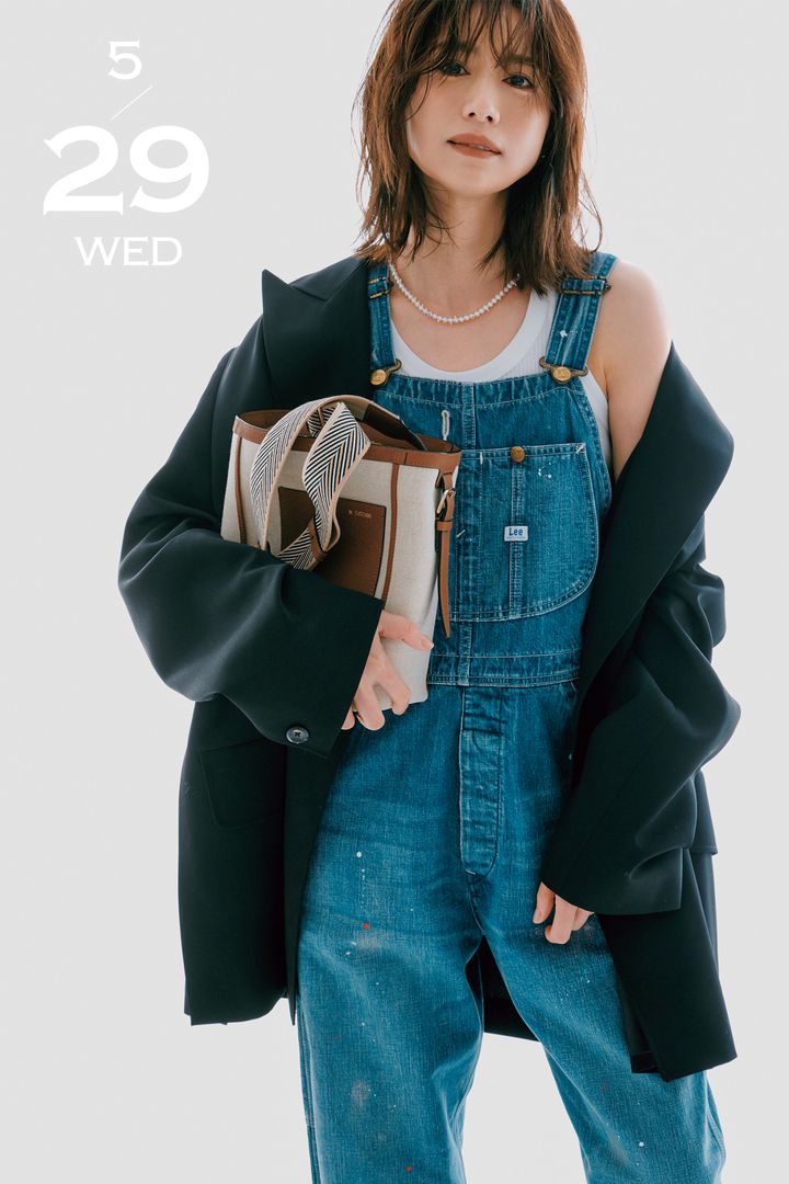 オーバーオール¥19,800(LEE) タンクトップ¥8,800(ハイク) ジャケット¥99,000(ザ・リラクス) バッグ¥297,000(ヴァレクストラ) TASAKIのパールネックレス/本人私物
