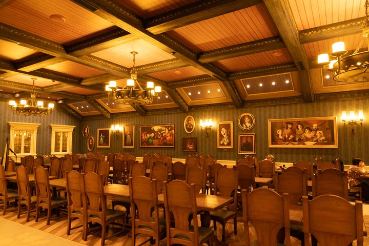 「フローズンキングダム」には2つの飲食施設があります。まず一つ目は「アレンデール・ロイヤルバンケット」、約570席あるカウンターサービスのレストランです。テラスを含む5つの部屋があって、ここでも映画の世界観を満喫できます。