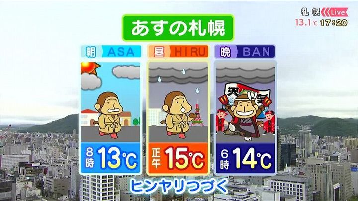 背景は5日(水)午後5時20分頃の札幌情報カメラ