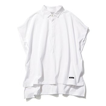 白Tシャツ /Americana 主張しない小ぶりのえり。ヒップが隠れる長さ+ゆったりとしたシルエットも、丈に前後差をつけることで、メリハリもついてルーズに見えない。そではノースリーブよりもやや長めの「ノースリ気味」の長さで、肩と二の腕の太い部分を覆い隠すことで華奢見せの効果も。