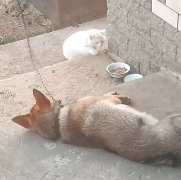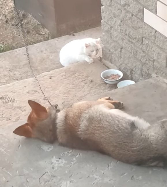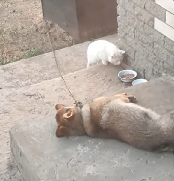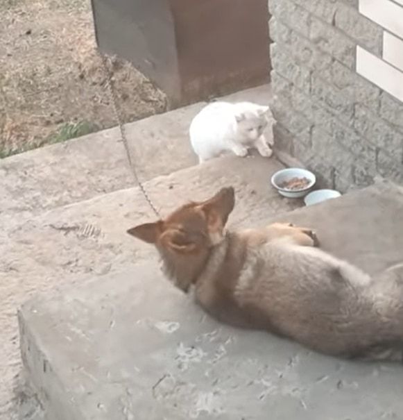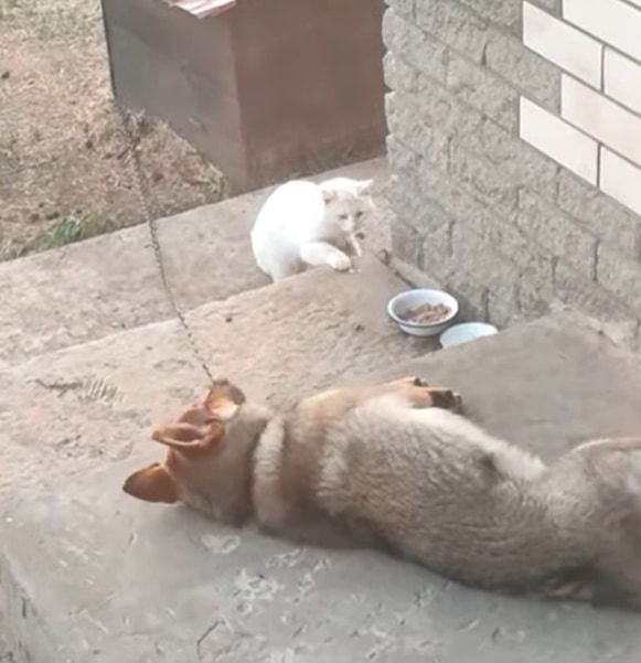 3. ワンコの餌を狙う猫ちゃん!果たして餌を盗ることはできるのか!?