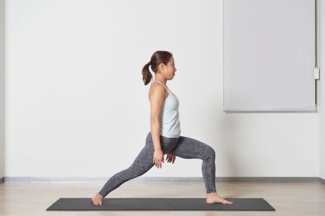 続けて脚を変えて同様に実践します。なお、(2)で手のひらを合わせられない方は手の甲を合わせる形でOKです。なお、期待する効果をきちんと得るためには「腕を上げるというより、肩甲骨を動かすイメージで行うこと」「腰を反らないように、骨盤をまっすぐ保ったまま行うこと」の2つがポイント。腰が反りすぎたり、肩の位置が上がったりといった状態にならないように注意して実践しましょうね。<ヨガ監修:Minami(インストラクター歴4年)>