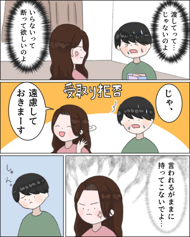 (渡してって・・・じゃないのよ、いらないって断って欲しいのよ)