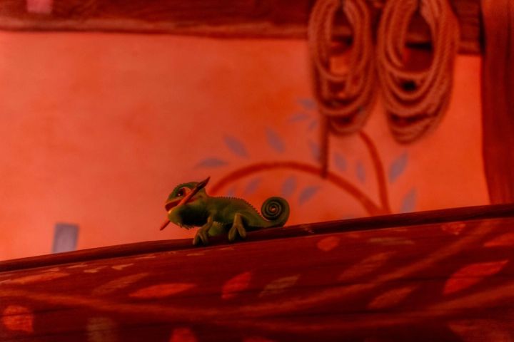 店内の装飾もこだわられていて、荒くれ者のフックハンドが劇中で弾いていたピアノがあったり、ラプンツェルの相棒であるカメレオンのパスカルがいたりと、ファンなら必見のものが盛りだくさん!食べるのそっちのけで、店内を見て回るのに夢中になってしまうかも!?