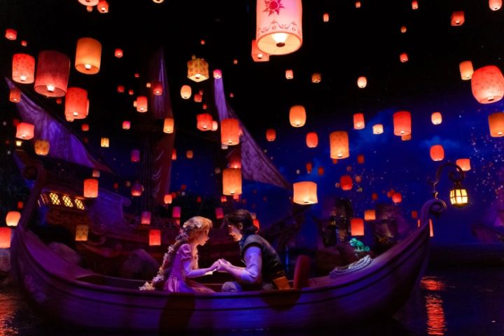 この塔を間近で見ることができるのが、新アトラクション「ラプンツェルのランタンフェスティバル」。ということで、早速ラプンツェルに会うためアトラクションに乗ることに♪なんと、ボートに乗車してラプンツェルの物語を楽しめるアトラクションは世界初だそう!