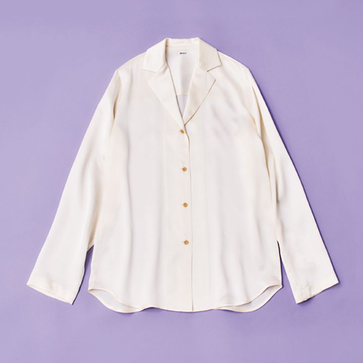 シルクサテンのオープンカラーシャツは、品のいい光沢に惹かれて手にした一枚。滑らかな肌触りで着心地も最高です。デニムに合わせたり、タンクの上に羽織ったり・・・。一年を通して活躍しそうです♡