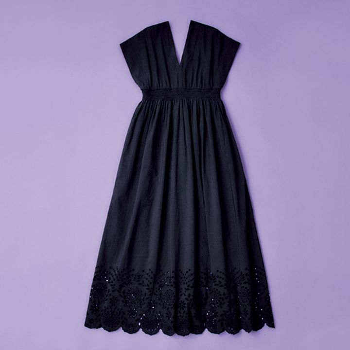 ブラックドレスを毎年買い足していて、今年はマリハをチョイス。高い位置にシェイプが入り、気になるウエスト周りをカバー。Vネックデザインなのですっきりとした印象で、カジュアルにも合わせやすいです。