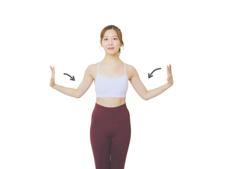 1:手のひらを内に向け腕をピンと上げる