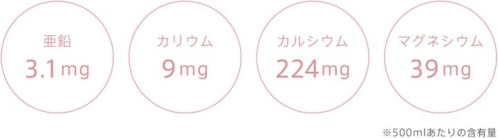 原材料名:水/炭酸、乳酸Ca、塩化Mg、グルコン酸亜鉛、塩化K