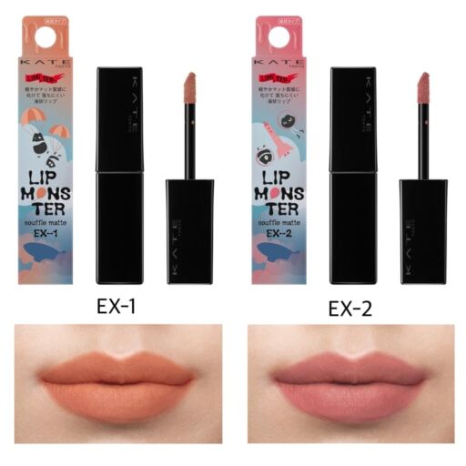 ▲【数量限定】ケイト リップモンスター スフレマット 新2色(EX-1 蜜柑雲シフォン、EX-2 羊雲のゆりかご) 各¥1,650(税込、編集部調べ)