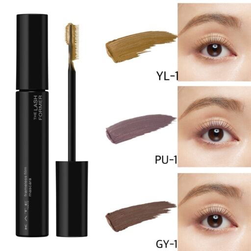 ▲【数量限定】ケイト フレームレスフィルムマスカラ 新3色(YL-1 濃霧イエロー、PU-1 薄明ラベンダー、GY-1 薄雲グレージュ) 各¥1,540(税込、編集部調べ)