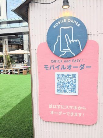 QRコードを読み取り、テーブルからの注文が可能。注文のために並んだり、出来上がりをフードブースの前で待つ必要がなかったりするのは、とても便利!