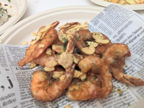 プリプリのエビを殻付きのまま揚げて、ガーリックチップスをかけて仕上げています。殻付きのエビながら柔らかくて食べやすい。ビールが進む一品でした。