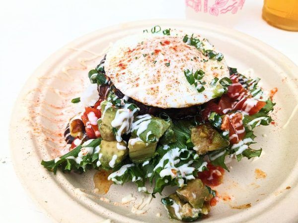 濃厚でボリュームたっぷりのデミグラスハンバーグに目玉焼き。いわずと知れたハワイアンのメジャー料理。