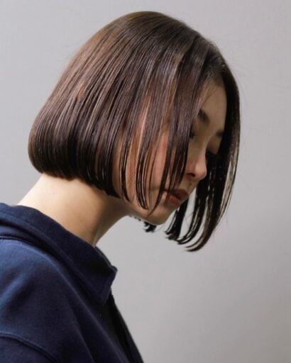あごラインのシンプルなボブなら“毛先ニュアンス”で大人感をグッと引き上げるのがポイント。