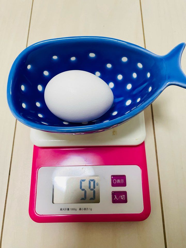 パック内で1番小さい卵でも59g。(容器の重さは抜いています)