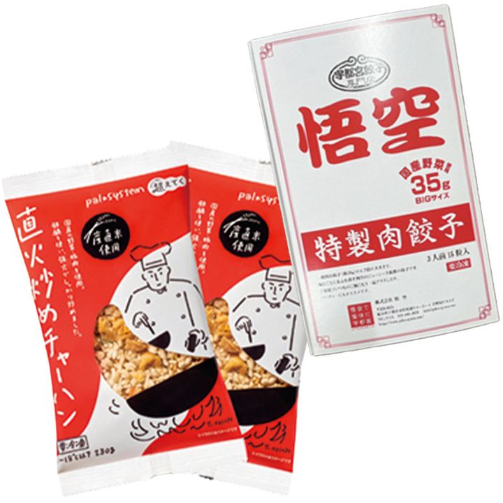 〈上〉肉の旨みにこだわったジューシーさ抜群の餃子。 特製肉餃子(1箱15個入)¥1,250(宇都宮餃子専門店 悟空) 〈下〉年間400万食以上が販売されているという、パルシステム屈指の大人気商品。 直火炒めチャーハン[230g×2]¥462(パルシステム/生協)