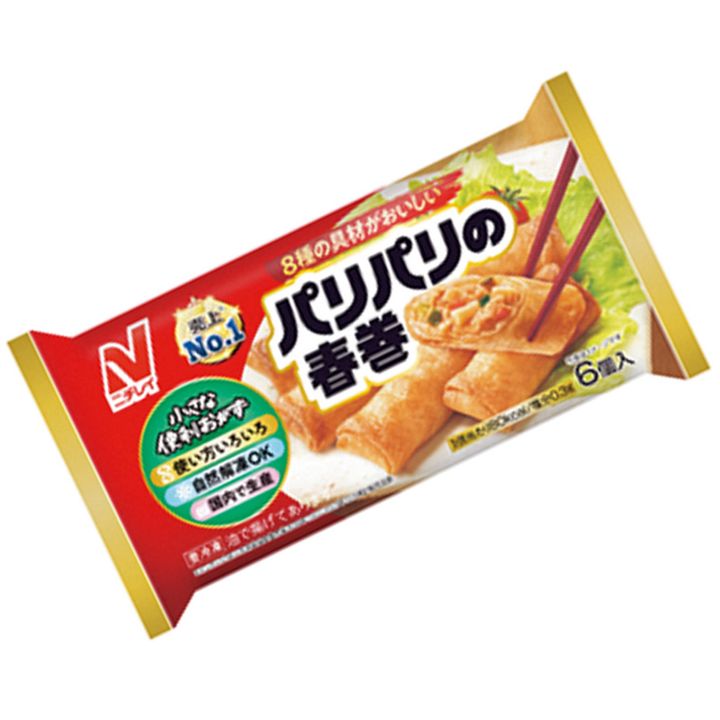 \これも使える!/ 「個人の意見ですがフライパンで焼くと、パリパリとした皮の食感を楽しめます。しいたけの出汁とほんのり感じる甘みでキッズも食べやすい。お弁当にはもちろん、ちょっとおかずが足りないかな?という時に大活躍!」(VERY Webライター・福島美菜さん・5歳女の子ママ) パリパリの春巻¥238(ニチレイフーズ)