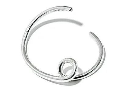 シルバーバングル 38,500円/ENEY(ENEY松屋銀座) つける角度によってさまざまな表情を見せる、有機的な曲線。小さな円を描くねじりラインでモードなニュアンスを加算。