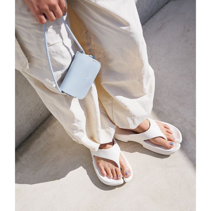 すっかり夏の足元の定番となったリカバリーサンダルにも韓国verがあったなんてノーマーク!モードなデザインをつま先に備えたファッション性の高いものや、独特のカジュアルさに苦手意識のあった方にはビーサン感覚で履けるトング型もおすすめ。サンダル¥8,690〈PAES〉サロペット¥17,050〈ジャーナル スタンダード〉(ともにジャーナル スタンダード 自由が丘店)ニット¥19,800(バトナー × デミルクス ビームス/デミルクス ビームス 新宿)ブレスレット¥5,400(アビステ)マイクロバッグ¥17,050(ヤーキ/ヤーキオンラインストア)