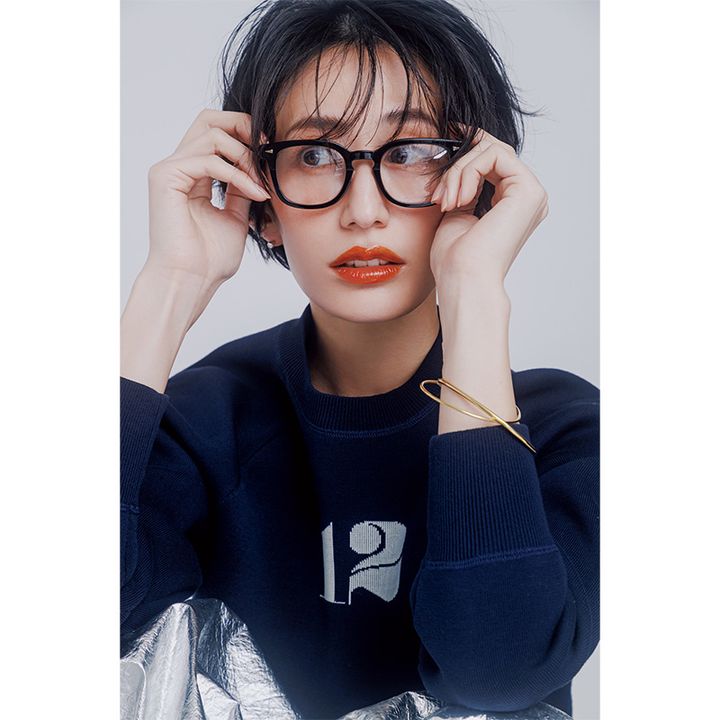 ニット¥23,100〈マカフィー〉バングル¥23,100〈フィリップ オーディベール〉(ともにトゥモローランド)スカート¥22,990(ネイヴ)メガネ¥64,900(AHLEM/グローブスペックス エージェント)ピアス¥44,000(サラース/サラース カスタマーサポート)