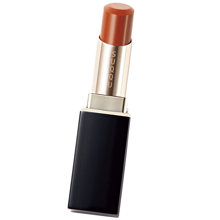 厚めのツヤ膜がぷるんと弾む印象的な唇に。 SUQQU モイスチャー グレイズ リップスティック 08 ¥5,830※セット価格(SUQQU)