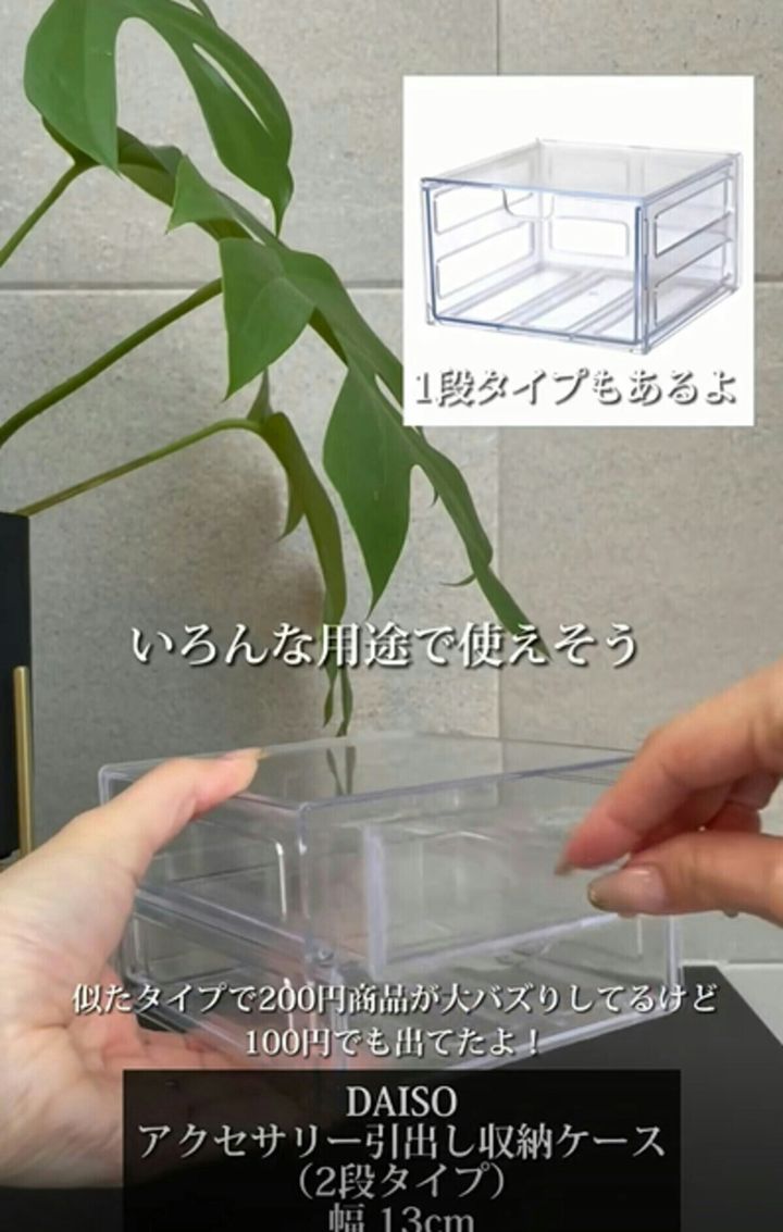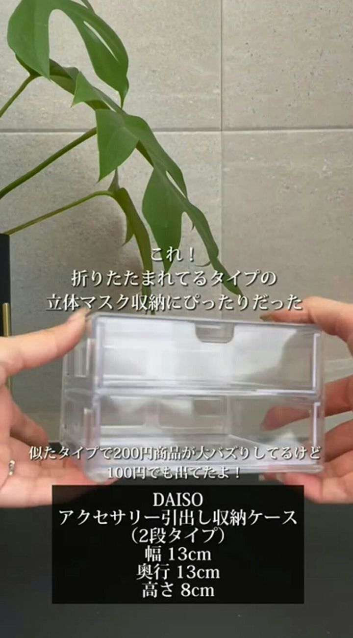𝑝𝑒𝑐𝑜・暮らしを整える記録さんが立体マスク用に使用している商品は、ダイソー『アクセサリー引出し収納ケース(2段タイプ)』[幅13cm・奥行13cm・高さ8cm]です。