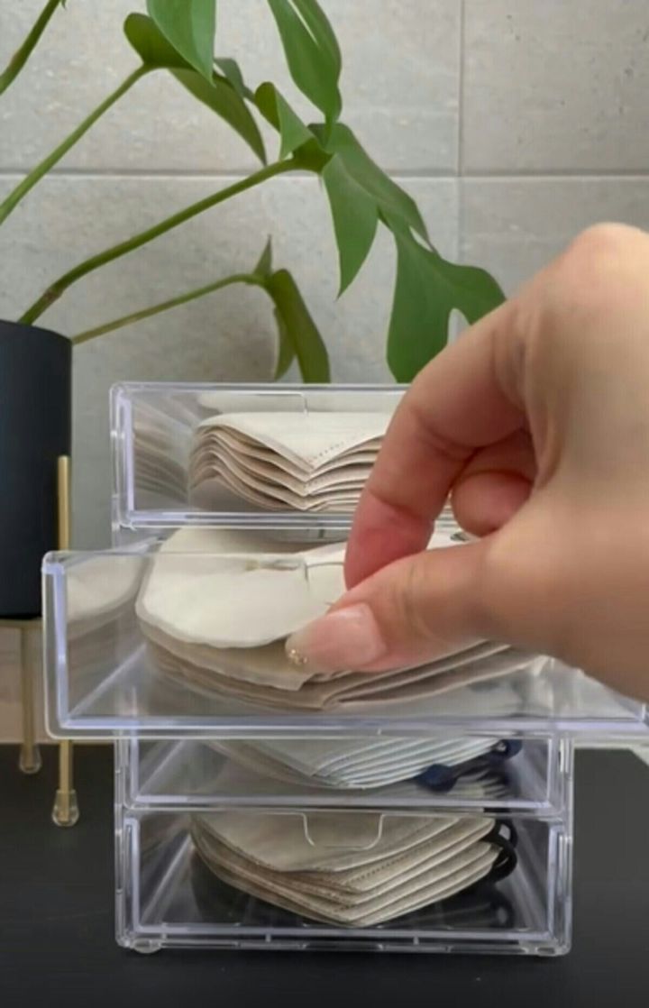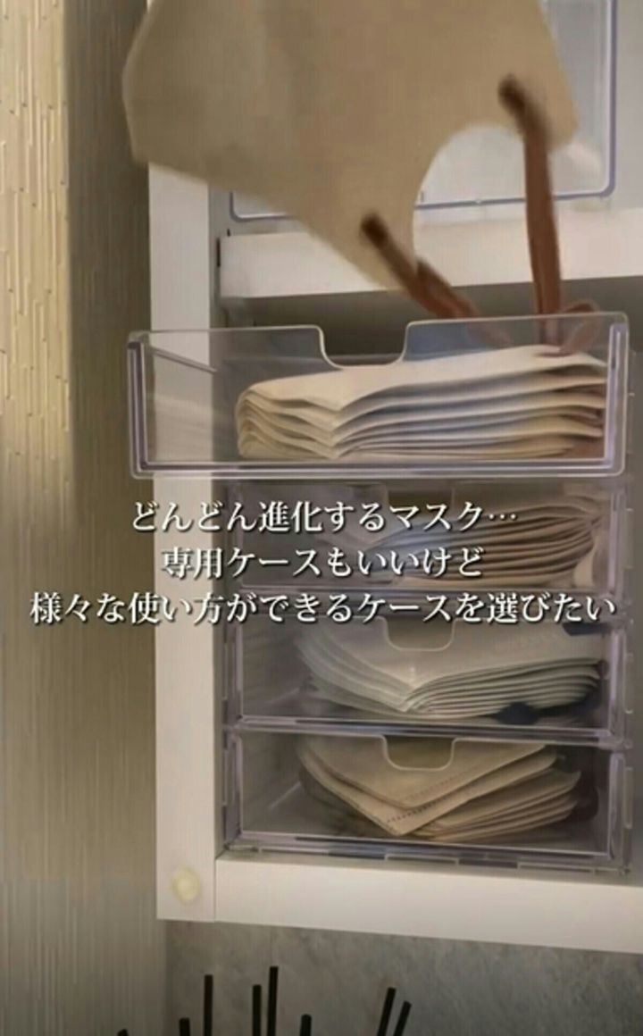 そこで、便利なのが𝑝𝑒𝑐𝑜🍭・暮らしを整える記録さんがSNSで紹介する、さまざまなマスクに合う収納アイデア。さっそく見ていきましょう。