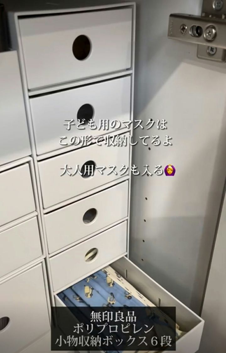 さらに、無印良品の『ポリプロピレン小物収納ボックス6段』も長方形マスク収納にぴったり。
