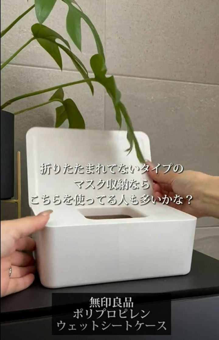 長方形タイプのマスクには、無印良品の『ポリプロピレンウェットシートケース』が、ぴったりフィットするそう。
