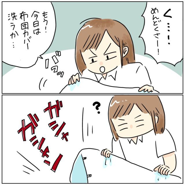 「く・・・めんどくさー!もう!今日は布団カバー洗うか・・・」