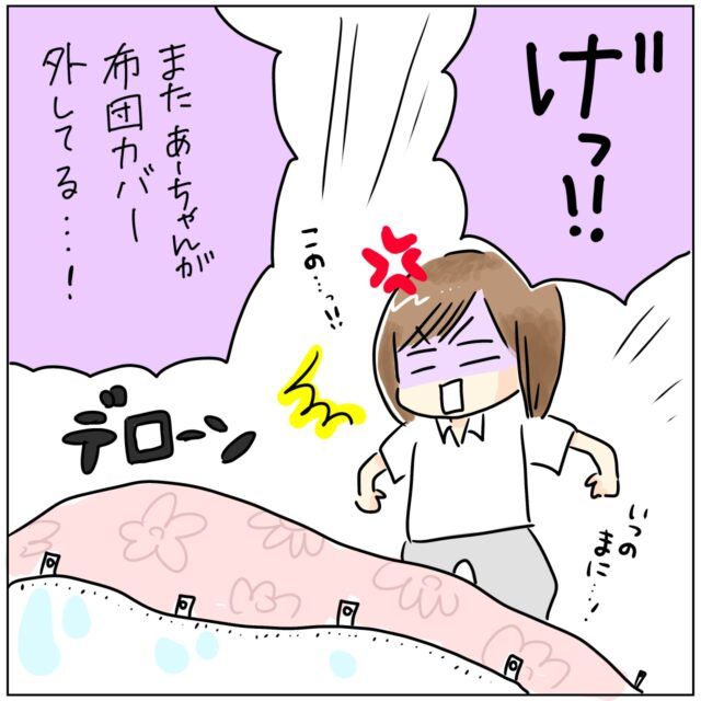 「げっ!!またあーちゃんが布団カバー外してる・・・!(怒)」