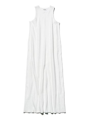 白タンクワンピース 29,700円/SACRA(インターリブ) ワッフル生地のような厚みのある生地で、アメスリ風のタンクでも気恥ずかしさは皆無。Aラインぎみの広がるすそでラフな見た目に女性らしさを加算。