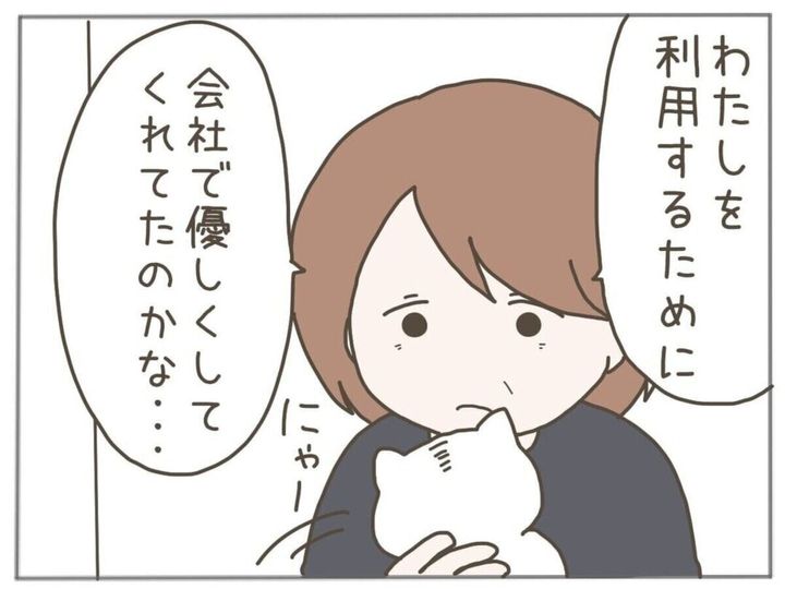 ミキ子さんは職場で優しく接してくれた推しの本性を知り、ただただショックを受けます。誰かの好意をいいように利用するなんて、人として最低です。