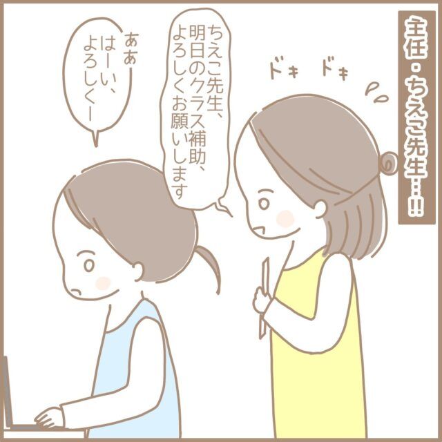 3. [109]私、嫌われてる?何も言われてないけど・・素っ気ない主任の態度に落ち込む。新卒で年長の担任になりました|まるちゃんの育児絵日記
