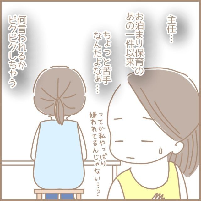 お泊まり保育でのことがあってからというもの、主任と話す時はなんだかビクビクしてしまって。。。