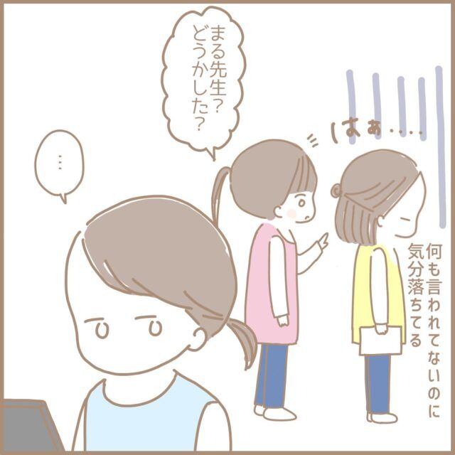 [109]私、嫌われてる?何も言われてないけど・・素っ気ない主任の態度に落ち込む。新卒で年長の担任になりました|まるちゃんの育児絵日記