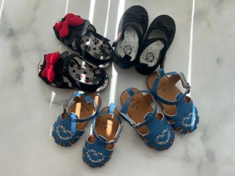 ミニーリボンサンダル(1790円/品番309-5145)、バースデイの中でも人気ブランド「tete a tete」のサンダル(1969円/品番3094826)夏素材ストラップシューズ(1529円/品番309-3476)の3足に決定!どれも13〜16cmの展開ですが、中には完売のサイズもありました。