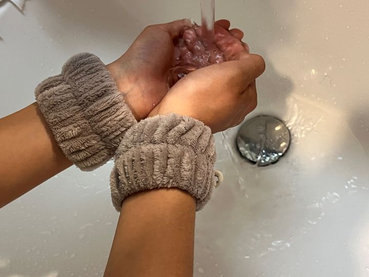3. 洗顔や洗い物でしぶきが飛ばない!3COINSで話題の「吸水アームバンド」で日々のイライラが解消しました