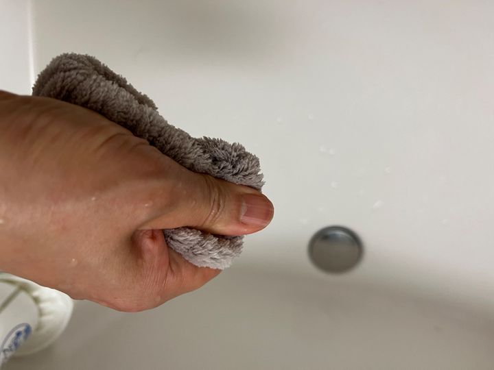 うちの洗面所がいちばん汚れるのは、娘(小学生)が顔を洗った後です。洗面台のまわりや正面の鏡にしぶきがはねるくらいは仕方ないと思ってますが、床も壁もビショビショ! どういう洗い方をしているのか……観察してみると、両手ですくった水が腕を伝って、肘から洗面台の外に落ちているんですね。