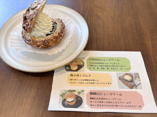 この他、この日は既に売り切れていましたが、季節によってクリームの変わる「日の出山シュークリーム」や、2024年春に完成したばかりの日の出町と青梅市をつなぐ梅ヶ谷トンネルにちなんだ「梅ヶ谷エクレア」も販売されています。