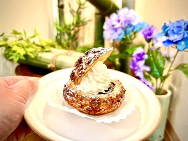 勝峰山シュークリームのあんこは小豆が比較的残っている、甘さ強めのあんこでした。そしてあんこと生クリームのペアリングはもちろんバッチリ☆甘さ強めなこともあって、とっても満足感のあるシュークリームでした♪