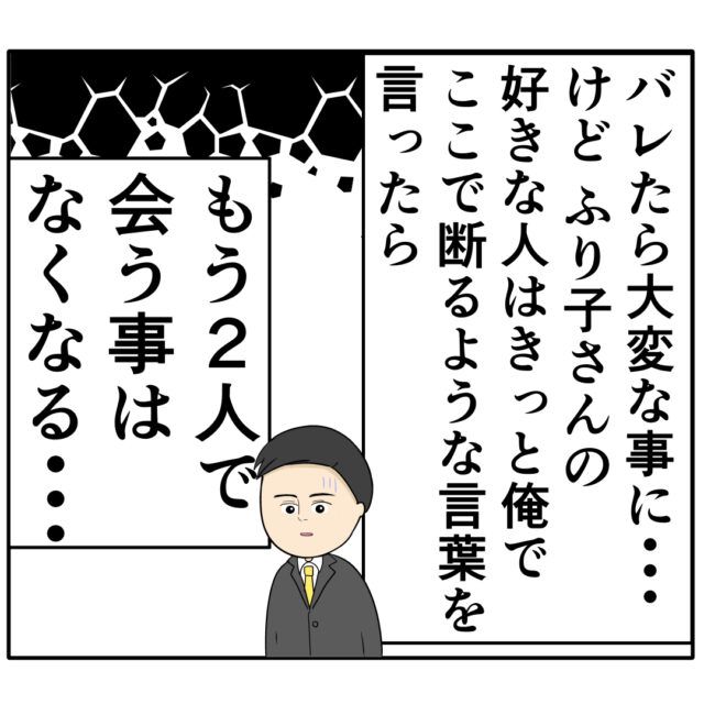 (バレたら大変なことに・・・けど、ふり子さんの好きな人はきっと俺で、ここで断るような言葉を言ったらもう2人で会うことはなくなる・・・)