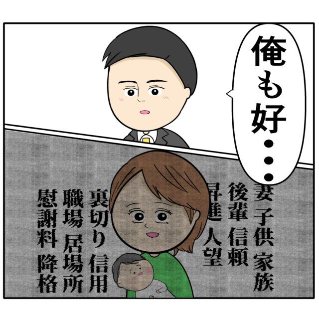 信頼、昇進、人望、裏切り、信用、職場、居場所、慰謝料、降格・・・と、この一言の後に待ち受ける現実にハッとして・・・