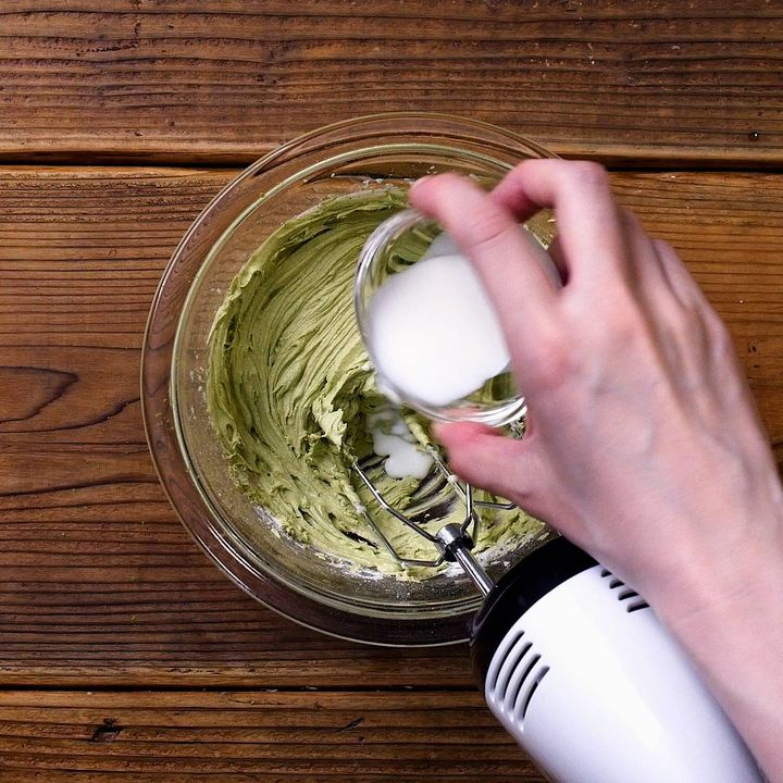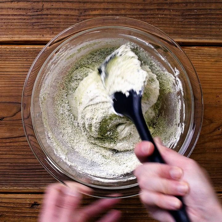 ・粉砂糖、アーモンドプードル、抹茶は、合わせてふるいます。