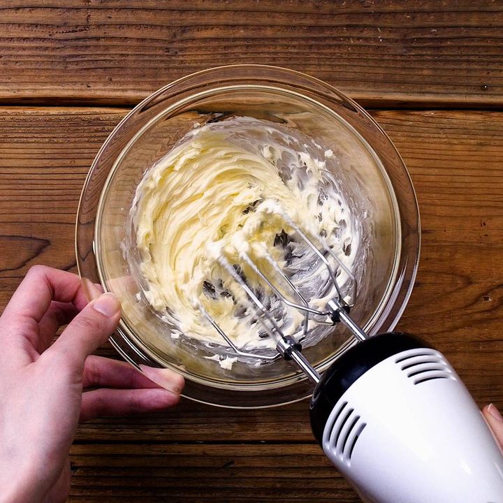 8: バタークリームを作ります。ボウルにバターを入れ、なめらかになるまで混ぜます。