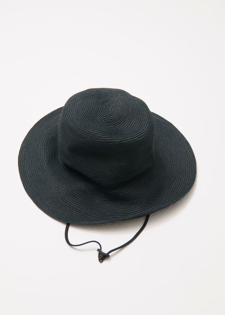 「こちらはストローハットで、UVプロテクト(UPF50+、紫外線カット率95%以上)機能を備えたもの。風で帽子が飛んじゃうこともあるし、あごヒモがついてるのって地味に嬉しいです。アウトドアシーンではもちろん、自転車に乗るときなんかにも安心ですよね。あと、コンパクトに折り畳めて、持ち運びできるのも魅力的。見ためもシンプルでかぶりやすいです」